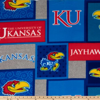 Rock chalk! Show your school spirit in fan-centric wearables and home accents made with this Kansas Block Collegiate Fleece Fabric. This soft fabric features various red, blue, and gray blocks, each containing Kansas logos and lettering. It’s perfect for turning into hats, scarves, blankets, and more!