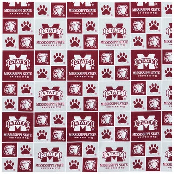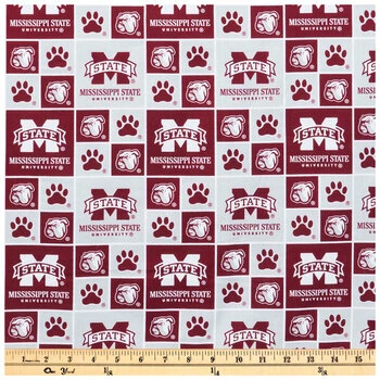 Shout your team pride from the tops of the stands with wearables made from Mississippi State Block Collegiate Cotton Fabric! This fabulous fabric features a block design of Mississippi State logos in maroon and grayΒ colors. Create scarves, dresses, bags, bandanas, and flags to showcase your team spirit!