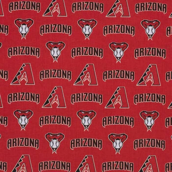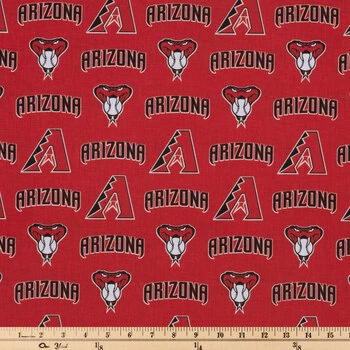 Hit a home run with fashionable designs constructed from MLB Arizona Diamondbacks Cotton Fabric. This fabric offers a red background, black “Arizona” lettering, black and red letter logos, and red, black, and white Diamondback mascots holding a baseball in their mouths. Root for your favorites through customized creations that boast your team spirit!
