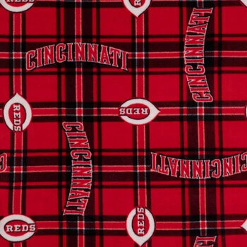 Activate your love for sports with warm creations made with MLB Cincinnati Reds Fleece Fabric! This fabric features a red, black, and white plaid background and Cincinnati Reds logos and text that will inspire your inner fan. Transform it into blankets, throws, apparel, and even accessories!