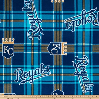 Sew warm and cuddly blankets and scarves to show your support for your favorite team using MLB Kansas City Royals Fleece Fabric. This fabric features a blue and dark yellow plaid and the Kansas City Royals logo. This fabric is perfect for taking to the ballgame!