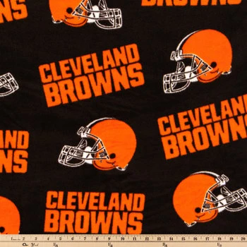 Harness your love for all things sports by creating fun wearables out of NFL Cleveland Browns Fleece Fabric! This material offers a black background, orange football helmets, and Cleveland Browns team names. Create various decorations or a tied-edge fleece blanket to showcase your favorite team!