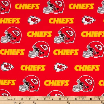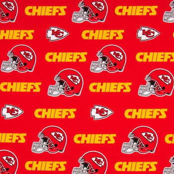 Show your football spirit by creating your own fan accessories, wearables, and home accents with NFL Kansas City Chiefs Cotton Fabric. Featuring the classic red and gold colors, this fabric boasts the team’s football helmets and print designs of arrowheads. This fabric is perfect for turning into hats, scarves, blankets, and more!