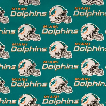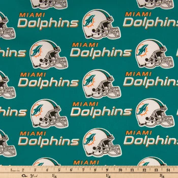 Let everyone know you are a mega fan with NFL Miami Dolphins Cotton Fabric! This material offers an aqua green background football helmets and “Miami Dolphins” text. With a needle and thread or your sewing machine, you can transform this fabric into decorations, wearables, and so much more. Game on!