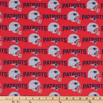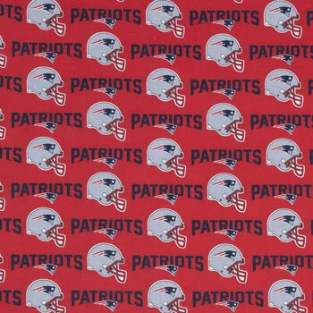 Salute your favorite team in the league with this NFL New England Patriots Cotton Fabric! This bright red fabric has navy blue “Patriots” text with the team’s logo and matching gray football helmets. Roll it out and sew it into awesome bandanas, scarves, and headwraps you can wear while you cheer on the Pats!