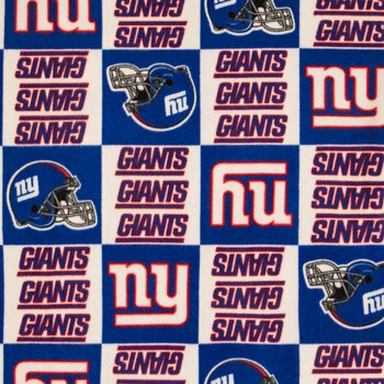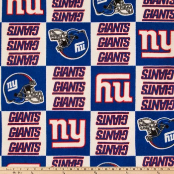 Score big in fan-centric wearables and home accents with NFL New York Giants Fleece Fabric. Featuring a repeating pattern of Giants logos, blue, red, and white text, and football helmets, this soft fabric is perfect for creating colorful and spirited hats, scarves, blankets, and more!