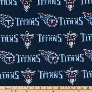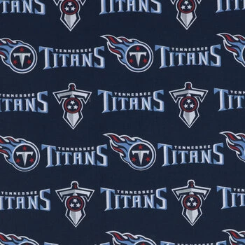 Anything you make using this NFL Tennessee Titans Cotton Fabric is sure to be a touchdown! This American-made navy blue fabric is covered in logos for the NFL team from Nashville. Steel, white, red, and light blue splashes of color make up the logo, letter “T,” and text that says “Tennessee Titans.” Use it to create fan-tastic wearables for the big game!