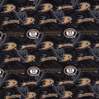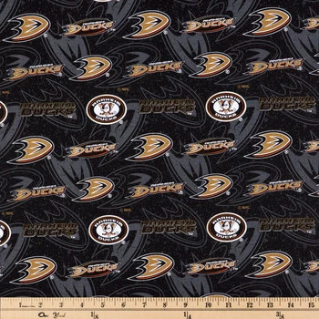 You have possession of the puck, so score a goal for crafting fun! NHL Anaheim Ducks Cotton Fabric features a black, gray, and gold Anaheim Ducks pattern with team logos and lettering designs. This material is perfect for transforming your sewing projects into fantastic fan-flair!