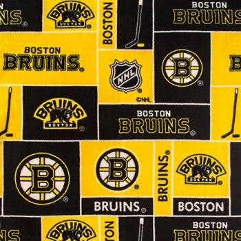 Create a stylish piece of wearable art in honor of your favorite hockey team! NHL Boston Bruins Fleece Fabric features a pattern that’s made up of an assortment of blocks with classic black and gold Boston Bruins colors, logos, and hockey sticks with pucks. Sew it into blankets, pillows, decor, and more!