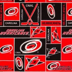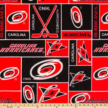 Goal! Score big with fan-centric wearables and home accents! NHL Carolina Hurricanes Fleece Fabric features a red and black block design with Hurricane logos and hockey-themed images. This material is perfect for turning into hats, scarves, blankets, and more!