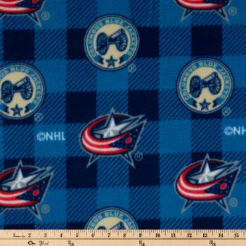 Show your team spirit with comfy, cozy wearables made from this NHL Columbus Blue Jackets Allover Fleece Fabric! This double-sided fleece fabric features a light blue and dark blue buffalo check background. There are also Blue Jackets logos and text that’ll stand out no matter what you make! Cut it to size to create blankets, scarves, flags, and more.