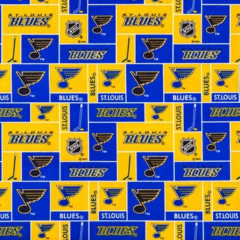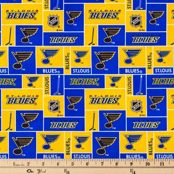 You have possession of the puck, so score a goal for crafting fun! NHL St. Louis Blues Block Cotton Fabric features a yellow and blue block design with Blues logos and hockey-themed images. This material is perfect for transforming your sewing projects into fantastic fan-flair!