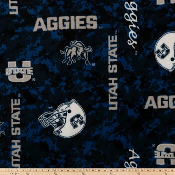 Don your school colors once again with our Utah State Allover Collegiate Fleece Fabric. This soft fabric is made of fleece and boasts a navy pixelated camo background. On top of that, the fabric is patterned with gray and white Utah State logos and symbols. Cuddle up in a homemade blanket while you watch the big game!