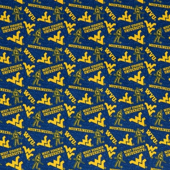 Show your school spirit with hand-sewn creations using West Virginia Allover Collegiate Cotton Fabric! This fabric features a dark blue speckled background with yellowย mascots, school logos, and coordinating text designs. Have a little team pride when you create a wide variety of projects using this fabric!
